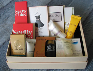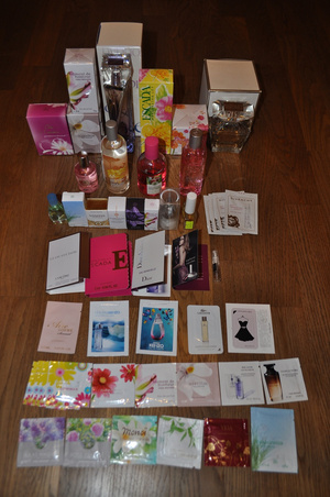 саше или пробнички (отпшиканы на раз) каждому за любой парфюм