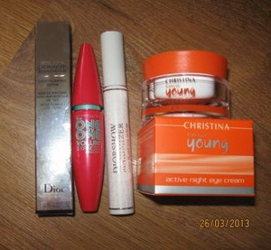 2. продам базупод тушь от Диор,годна до 04.2015г. -400 р, тушь Мейбелинн-100р, ночной крем вокруг глазсретинолом от Кристина половина,годендо 05.2014г,от морщин и синяков под глазами - 700 р. Всю кучку отдам за 900 р
