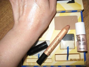 4. Продам из набора Бенефит бронзер Хула 4 гр. годен до 04.2015г. С мини кисточкой. коробочка на магните, можно использовать для хранения косметики (внутренности достаются) из набора (пришел с США)- карандаш-тени-хайлайтер Золотой оттенок, и хайлайтер Хай бим.За все 400 р