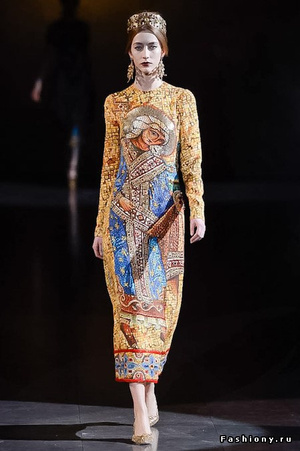 Мне у этой коллекции D&G очень формы понравились, цвета, заимствованные орнаменты. Пожалуй, с иконами - это перебор. Можно было тоньше вдохновляться Византией, а не тупо цитировать, имхо.