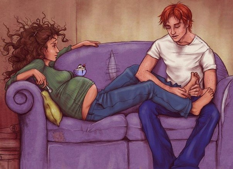Муж прислонялся к животу, слушал как шевелится сынуля, разговаривал с ним, почему-то говорил всегда в пупок мне...