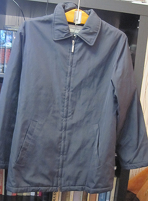 1. Куртка темно-синяя мужская осенняя "Саваж"(вспышка её высветлила, на самом деле она синяя, а не сероватая), размер 50-52, Длина по спинке - 76 см. Ширина подмышками - 60 см. 500 руб.