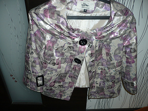 2. Куртка весенне-летняя, ткань плотная, с небольшим блеском, р-р. 40-44, рукав 3/4, на кнопках, 350 руб.