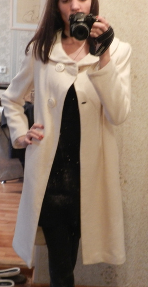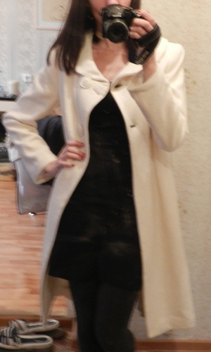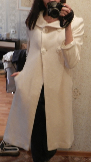 Элегантное пальто молочно-белого цвета.