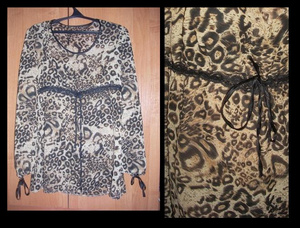 4. Шифоновая блуза-туника. Состояние идеальное (мне слишком большая, не носила). Справа - цвет, на фото слева из-за вспышки исказился.