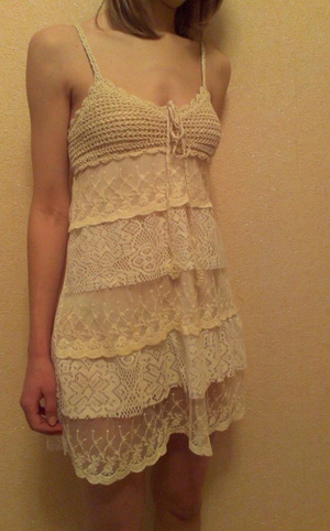 Новое нарядное платье Zarina р-р M. Двухслойное, нижний слой - подклад из трикотажа, верхний - на сетчатой основе выложен узор в виде кружева. Платье тяжелое, выглядит вживую очень дорого. Качество идеальное. Сидит по фигуре чуть-чуть свободно, создает плавный контур. Верх длиннее подклада, за счет этого у платья изящный кружевной кант по подолу. Грудь до 4 р-ра, талия до 82 см, бедра до 103 см, длина от проймы - 75 см (1500 руб)