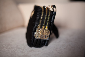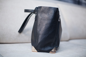 Клатч FIATO (Италия). Натуральная черная кожа "рептилия". Длиный ремешок на цепочке (позволяет носить через плечо) + короткий ремешок. Внутренник карман на молнии, внешний карман на молнии на задней стенке.