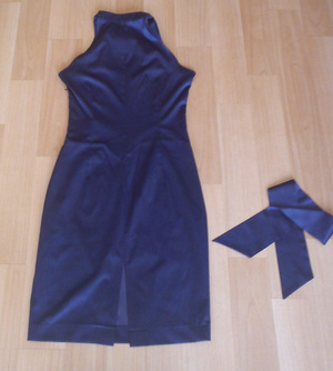 Новое платье-сарафан 44 р-р. Атлас на хлопковой основе. Грудь до 3,5 р-ра, талия до 75 см, бедра до 95 см, длина от проймы - 75 см. Качество идеальное. Футляр по фигуре, "американская" пройма. На горловине декоративная шлевка, куда можно вставить ленту, идущую в комплекте, например в виде банта (фото№5) или петли - получится более нарядный вариант на голое тело. Либо без декора и на рубашку или водолазку - повседневный. Цвет корректно передан на фото №5 (700 руб)