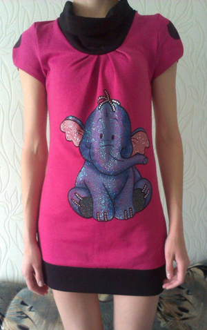 2) Платье-туника розовое со слоном. Размер 42-44. Цена 100 руб.
