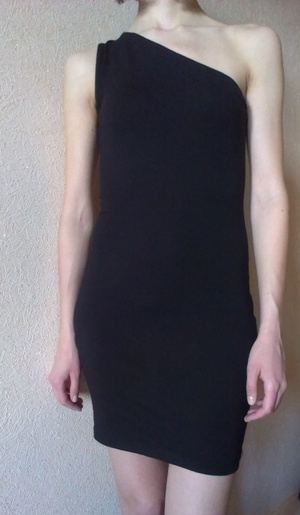 4) Черное платье (на одно плечо). Размер 42. Цена 100 руб.