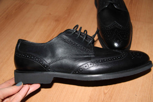 родам туфли мужские, новые в коробке на 43 размер, заказывались по интернету и не подошли по размеру, цвет черный, кожа натуральная,