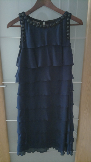 Платье Апарт р-р 46, синее, 4000 рублей (к платью могу предложить бижутерию как окантовка платья (браслет и серьги) и туфли синего цвета (р-р 38).
