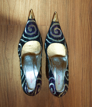 Очень красивые туфли. 39 размер. Снаружи текстиль, изнутри нат. кожа. Смотрятся дорого. Покупала за 1700 рублей со скидкой. Но так ни разу и не одела. Подойдут на узкую или среднюю стопу.