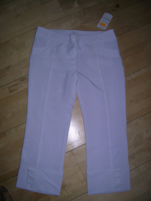 - Капри тонкие, белые, стрейч. Хлопок 35%, вискоза 45%, полиэстр 15%, лайкра 5%.
