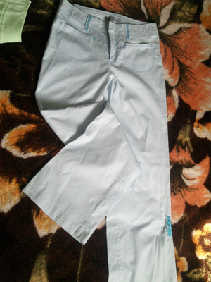 5. летние небесного цвета брючки с вышивкой на одной из брючин, ripcurlgirl, хлопок-спандекс, размер 40, рост до 162см, 230 руб.