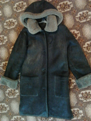 Продам очень теплую, качественно пошитую дубленочку. Размер 44-46, длина по колено (на рост 165 см), длина рукава 65 см (есть отвороты, можно регулировать). Цвет - зеленый (болотный), лазерная обработка. Есть капюшон (отстегивается), накладные карманы, застегивается на пуговицы. По бокам небольшие разрезы. Состояние на 4 с плюсом, носилась аккуратно. Цена 3500 рублей.