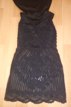 Новое нарядное платье Zarina р-р M. Двухслойное, нижний слой - подклад из трикотажа, верхний - на сетчатой основе выложен узор в виде кружева. Платье тяжелое, выглядит вживую очень дорого. Качество идеальное. Сидит по фигуре чуть-чуть свободно, создает плавный контур. Верх длиннее подклада, за счет этого у платья изящный кружевной кант по подолу. Грудь до 4 р-ра, талия до 82 см, бедра до 103 см, длина от проймы - 75 см (1500 руб)