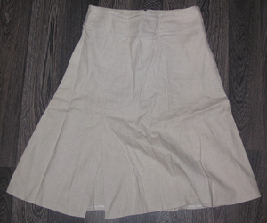 2. Юбка бежевая летняя, льняная, р-р 42-44, пару раз б/у. Цена - 150 руб. Карманы сзади, как и застежка. Спереди - небольшой запах по вырезу.