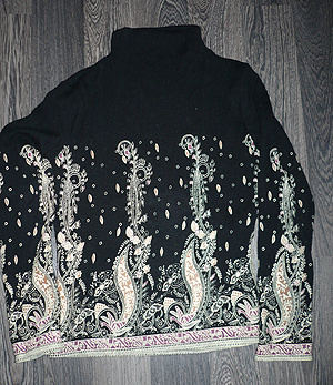 3. Кофта шерстяная с бисером, воротник высокий застегивается «трубой», р-р. 160 (рост). Можно мерить на подростка или на девушку, женщину 40-42 размера. 150 руб.
