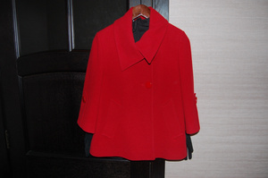 2. Куртка весенне-летняя, ткань плотная, с небольшим блеском, р-р. 40-44, рукав 3/4, на кнопках, 350 руб. В прохладный вечер можно просто накинуть на плечи