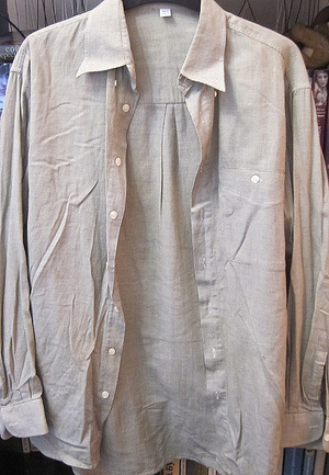 8. Бледная желто-молочная рубашка, тонкая, практически невесомая. Р-р. 40-44. Ни разу не носилась. Сшила, теперь лежит без дела - 200 руб.