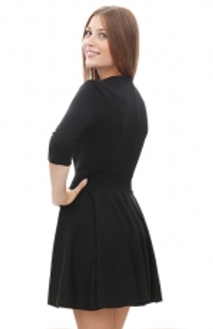 Размер 42-44. Цвет черный. Длина - 68 см. Высокая кокетка - 12см. Подклад. Шлица. Трикотаж отлично садится по фигуре. Состав: вискоза 60%, синтетика. Одета не более 5 раз.
