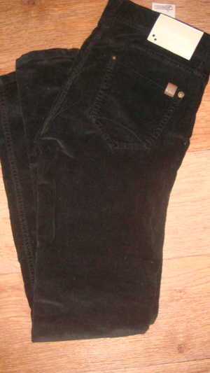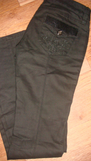 3.Черные прямые брюки. Ткань плотная, черная с небольшим добавлением блеска.Привезены из Германии. Размер 44. Цена - 100
