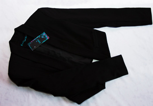 Атласная кофточка на замке, «собачки» украшены стразами, резинка с люрексом, смотрится просто шикарно, сделано в Турции, не пришлось поносить, этикеток нет, размер 40-44, цена 1000 руб.