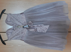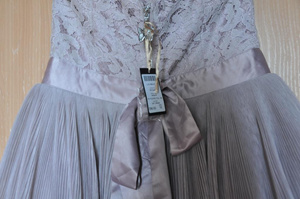 Продается новое платье из Англии, р-р 10. Верх -очень красивое кружево, низ - плиссировка с подъюбником из шелка (чтобы не просвечивалась юбка) и сетки (для придания объема юбке). На талии широкая алтасная лента, переходящая в бант на спине (завязывается). Верх сделан по подобию корсета, с косточками и силиконовой окантовкой для хорошей фиксации. Также имеются дополнительные лямки, которые при необходимости можно пристегнуть.
