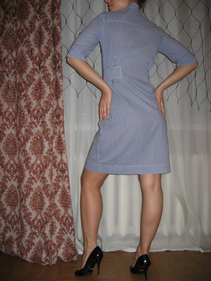 Платье летнее в морском стиле, пуговички полностью расстегиваются, по бокам карманы (удобный и не жаркий офисный вариант для жаркого лета), размер 42-44, (рост на фото 166 см), цена 400 руб.
