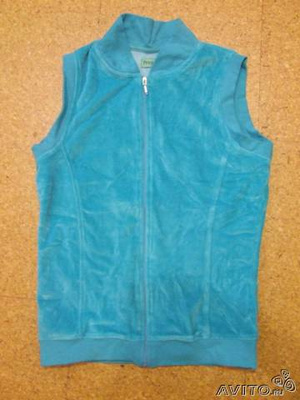 Бирюзовую жилетку на молнии, из бархатистой ткани, 44 р., новая, 150 р.