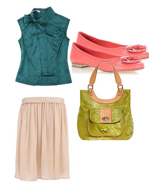 А уместно ли сочетание оливковой сумки и коралловых или алых балеток? (Как на предыд.фото). Просто у меня подобное сочетание есть, вот думаю, не слишком ли пестро получится... еще ведь и одежда цветная. Или одежду тогда лучше выбирать постельных приглушенных тонов?