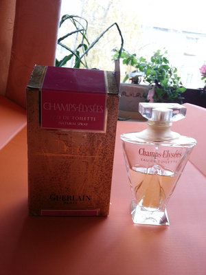 предпоследнюю версию Champs Elysées Guerlain, edt, 50мл- чуть меньше половины флакона- 900р
