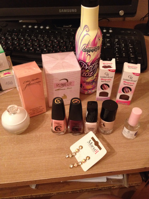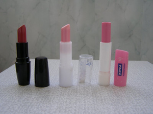 1.Помады. 1-ая от Эйвон sheer solar rose, пробовала цвет 2 раза на руку 110р. 2-ая anytime розовая с деликатныз золотистым блеском, бу 1 раз 50рублей, 3-я балзам от нивея розовый бархат бу кисточкой пару раз 50рублей