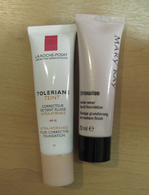Тональный крем ЛяРошПозэ, тон 11. Мне темноват. Очень классный, с SPF. Ок. 2/3. 500 р. Тональный крем Мэрикей, тон ivory2. Мне светловат. Для нормальной и жирной кожи. Ок. 3/4. 400 р. Постаралась сфотать оттенок
