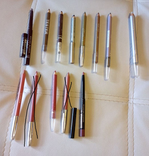 2.Продам карандаши для глаз (цвета по порядку: коричневый без перламутра, коричнево-зеленый, коричневый, серый, зеленый, зеленый хамелеон, цвета хаки, серебристый с блестками ИвРоше) и губ. Есть новые. от 30-80руб.