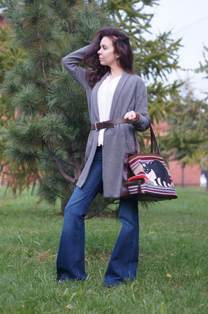 p.s. а у женщины на фото джинсы, скорее всего, те, что по-англ.называются bellbottom, колокол, как раз которые были в моде в 60-80е. (это если захотите нагуглить информацию). Мне кажется, что это вещь с очень выраженным историческим контекстом, так сказать, поэтому это вопрос личного выбора и подходящего стиля. А невысоких, как я писала в прошлом сообщении, такие широкие голенища заставляют выглядеть карикатурно.