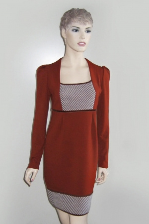 приятное офисное деми-платье, не ношено, размер угадала (46), рост не угадала - не доросла, нужно быть не менее 170 см., чтобы нижняя часть "села на место"