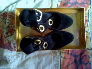 1. Туфли текстиль, р-р 37, материал текстиль, шпилька 13 см,платформа 3 см. БУ пару раз в офисе,коробка набойки и чек- все есть. Отдам за 1000 р,хотя обошлись дороже.