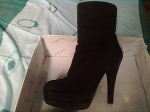 2) сапоги зимние из натуральной замши, натурального меха (еврозима). Цвет: шоколад. Использовались один сезон не плотно (не каждый день). Очень стильно смотрятся на любой ноге. Размер: 35. Каблук: 16см, платформа: 3,5 см, есть профилактика.