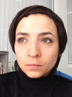 Помучалась я достаточно, пытаясь надеть линзы самостоятельно, они никак не хотели отлипать от подушечки пальца и переноситься на глаз. Но я это сделала, сегодня хожу привыкаю к цвету, из-за непривычки видеть себя со светлыми глазами, кажется, что страх страшный, а без макияжа так вообще ужас-ужасный