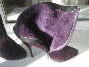 Фиолетовые ботильоны маркировка 40, но реально на 39 р-р, за 1000 руб, мех натуральный, состояние идеальное