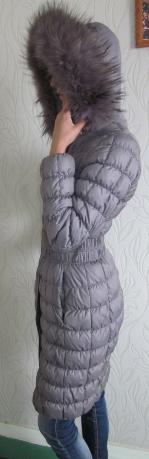 Продам женский пуховик, б/у. На нехолодную зиму. Капюшон не отстегивается. Мех на капюшоне натуральный, можно отстегнуть. Приталенный. Размер 42/48.Длина примерно до колена при росте 175. 1300 рублей