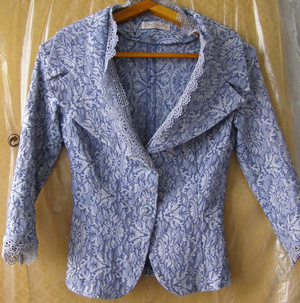 2. синий пиджак, идеальное состояние, размер 42, рюшки при желании можно легко убрать, рукав 3/4. 500р