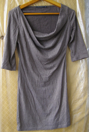 1. Коричнево-серое платье, одето 1 раз, сидит по фигуре, руказа 3/4, воротник-хомут, размер 42 (36), 800р