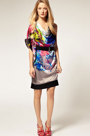 Новое платье AJC, размер 44. Притачная юбка из шифона, на подкладке. Эластичная вставка на талии. Модный асимметричный покрой. Длина спереди ок. 84 см, сзади - ок. 100 см. Материал: 64% полиэстер, 32% вискоза, 4% эластан; вставка из шифона и подкладка, 100% полиэстер. Цена 900.