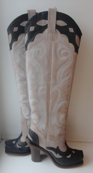 Роскошные сапоги в ковбойском стиле LISA FOR DONALD PLINER. Новые, демисезонные. Стоили больше 500 долларов. Великолепный дизайн и безупречное исполнение. Без замка. Натуральная кожа, естественно. Размер 6М на 35-35/5 наш - в зависимости от ширины стопы. 23 см по стельке. Выглядят изумительно! 4000