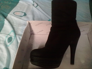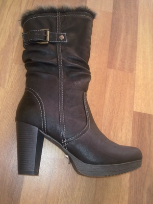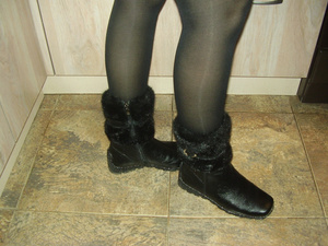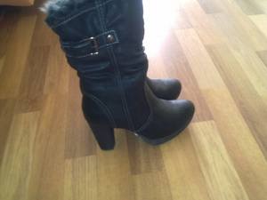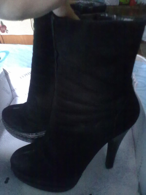 1) сапоги зимние из натуральной замши, натурального меха (еврозима). Цвет: шоколад. Использовались один сезон не плотно (не каждый день). Очень стильно смотрятся на любой ноге. Размер: 35. Каблук: 16см, платформа: 3,5 см, есть профилактика.