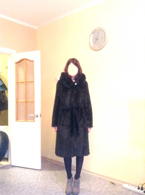 1) норковую шубу темно-коричневого цвета. Б/у, хороший мех, двухсторонний капюшон, без пояса. Силуэт: свингер. На размер 42-46. Замеры сниму по запросу. Мерить на пл. Кирова. Цена: 38000 рублей;