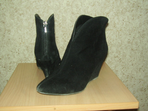 модельные ботиночки, деми, очень эффектные, р.37 (не маломерят), замша не натуральная, состояние идеальное (мне не подошли по размеру, одевала пару раз). цена 500 руб.